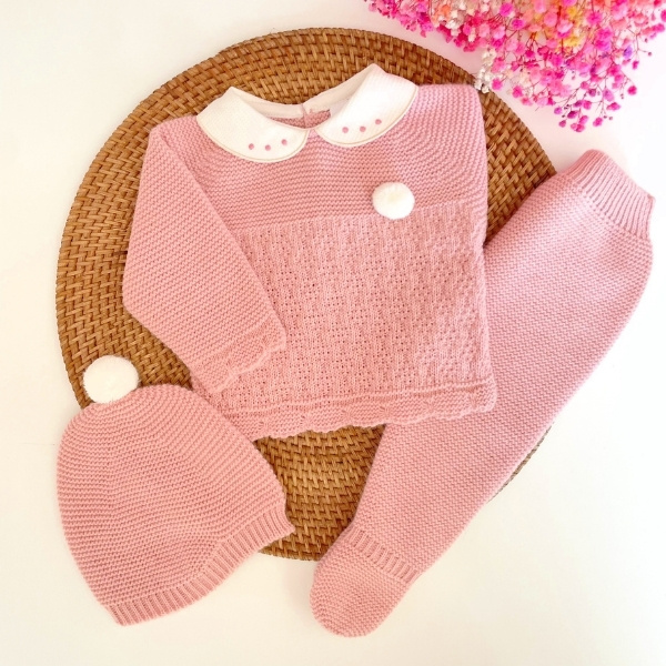 Diseñado con mimo para los primeros días de vida, incluye jersey, polaina y gorrito a juego, todo confeccionado en dralón 100 % suave y delicado con la piel del bebé. 🌿